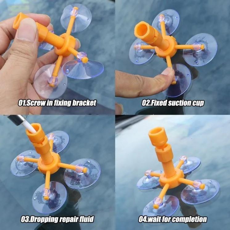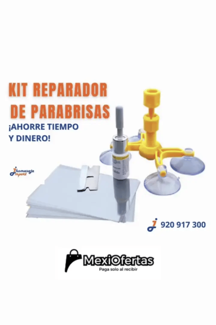 El kit restaura la resistencia y claridad del vidrio, deteniendo la propagación de la grieta y reduciendo la visibilidad del daño hasta hacerlo casi imperceptible 👀✨.