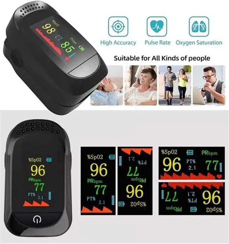 Nuestro oxímetro de dedo es tu aliado perfecto para medir con exactitud tu nivel de oxígeno en la sangre y tu frecuencia cardiaca. Con solo presionar un botón, obtienes: